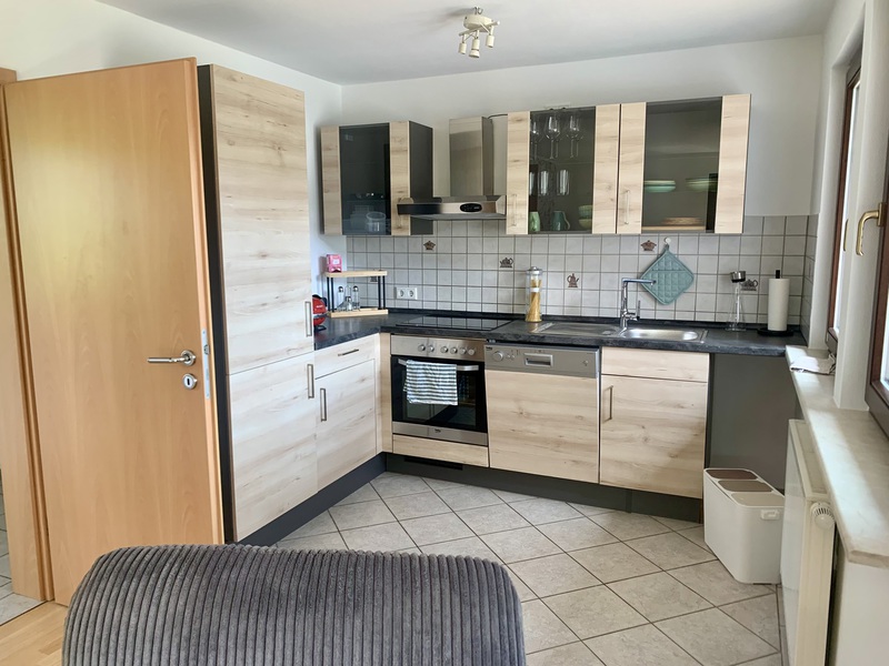 Die Küche ist vollausgestattet mit Kühlschrank + Gefrierfach, Spülmaschine, Backofen und Filterkaffeemaschine. Eine Grundausstattung an Gewürzen, Öl, Kaffee und Tee ist vorhanden.